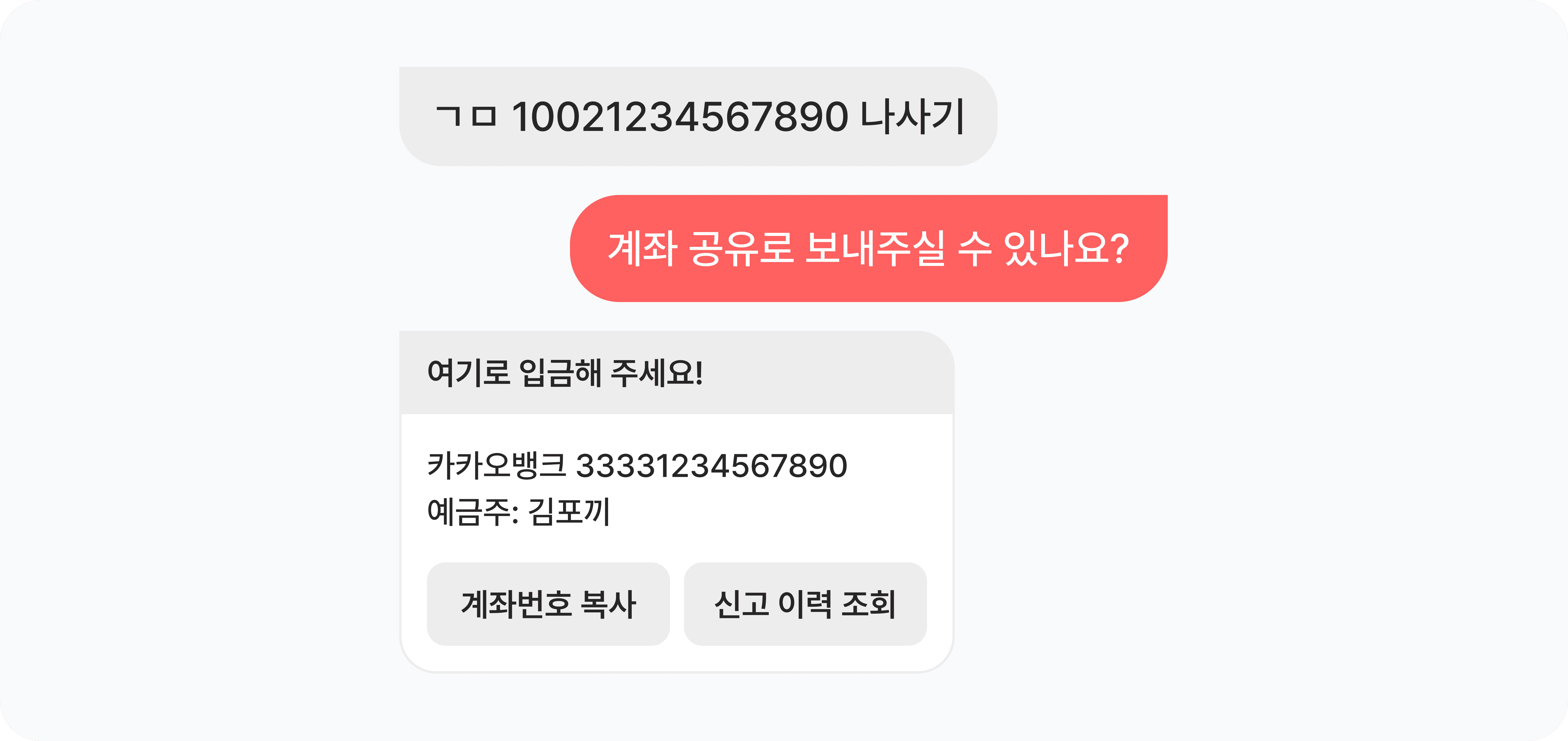 특히 계좌번호를 여러 번 나눠서 보내거나, “부모님 계좌로 보내주세요.”, “친구 계좌라서 이름이 달라요.” 같은 핑계를 대며 본인 명의가 아닌 계좌로 입금을 요청한다면 더욱 조심하세요.