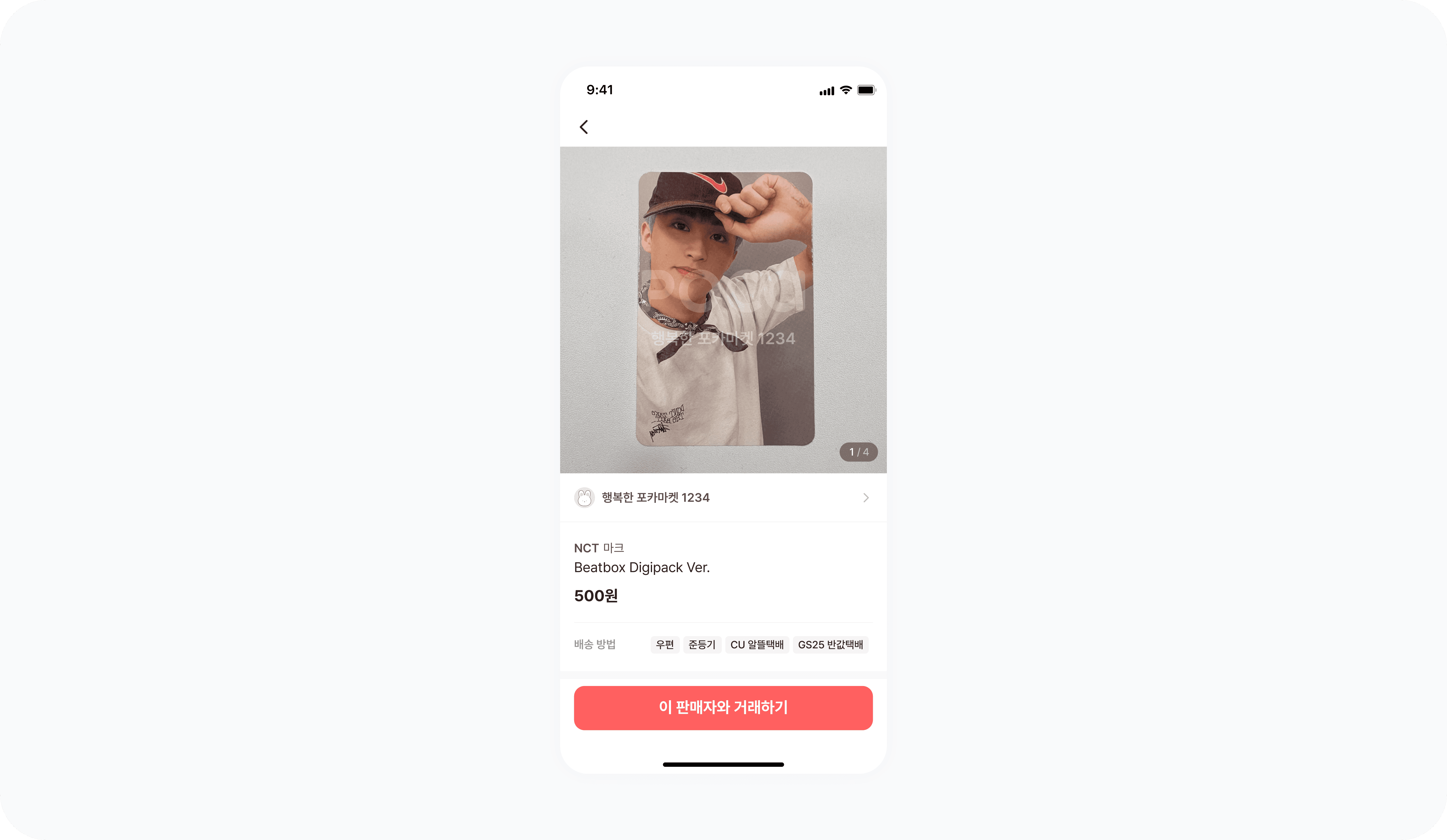 이제 구매자도 거래 전에 판매자가 등록한 실물 사진을 먼저 확인할 수 있어요. 마음에 드는 상품이라면, [이 판매자와 거래하기]를 눌러 바로 거래를 시작해 보세요.