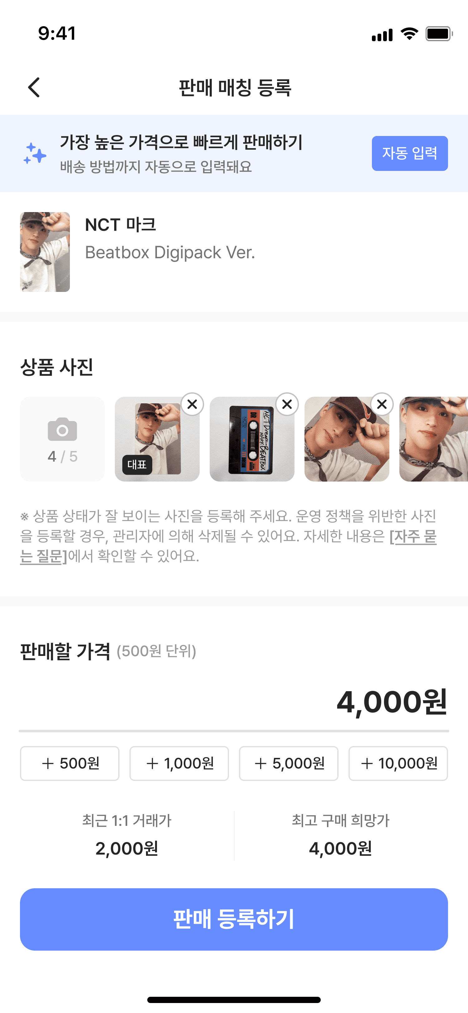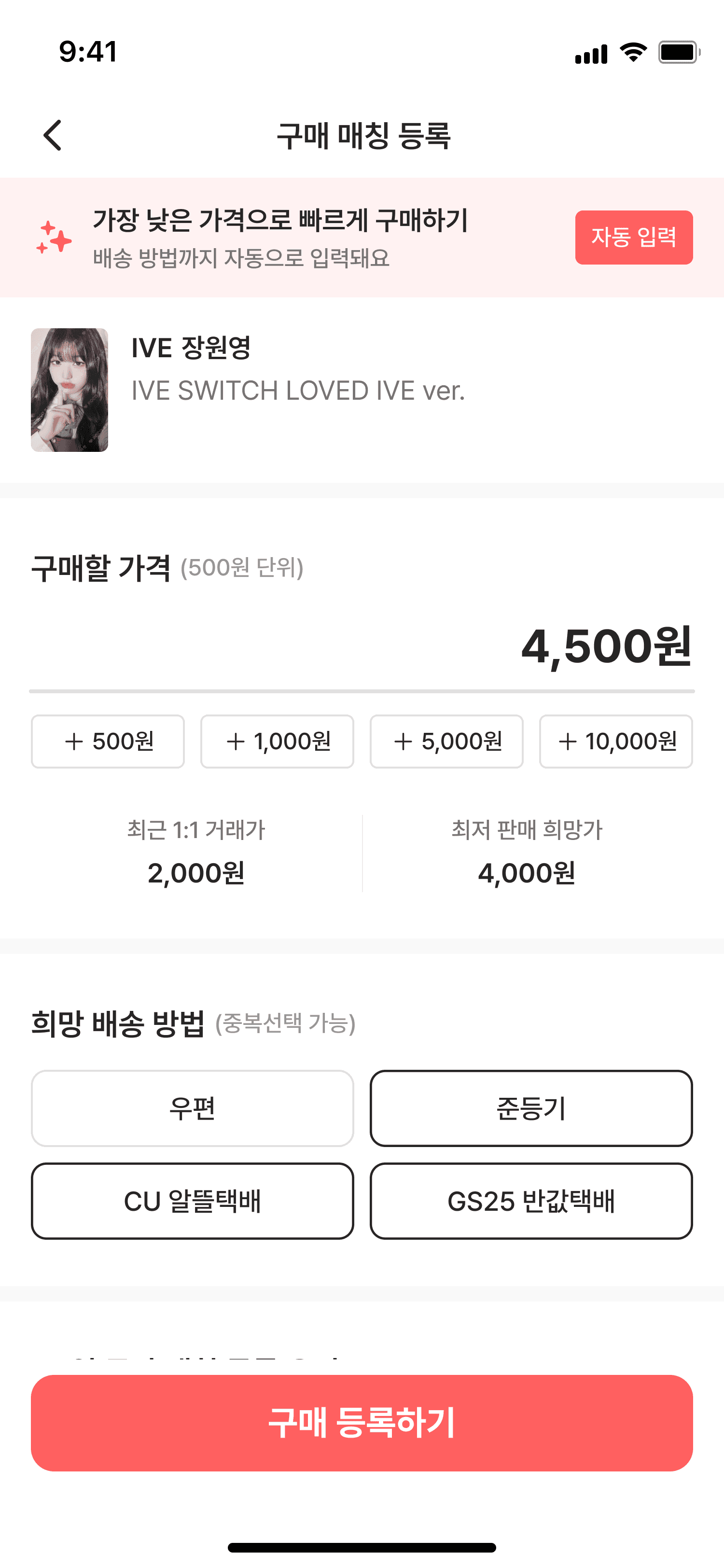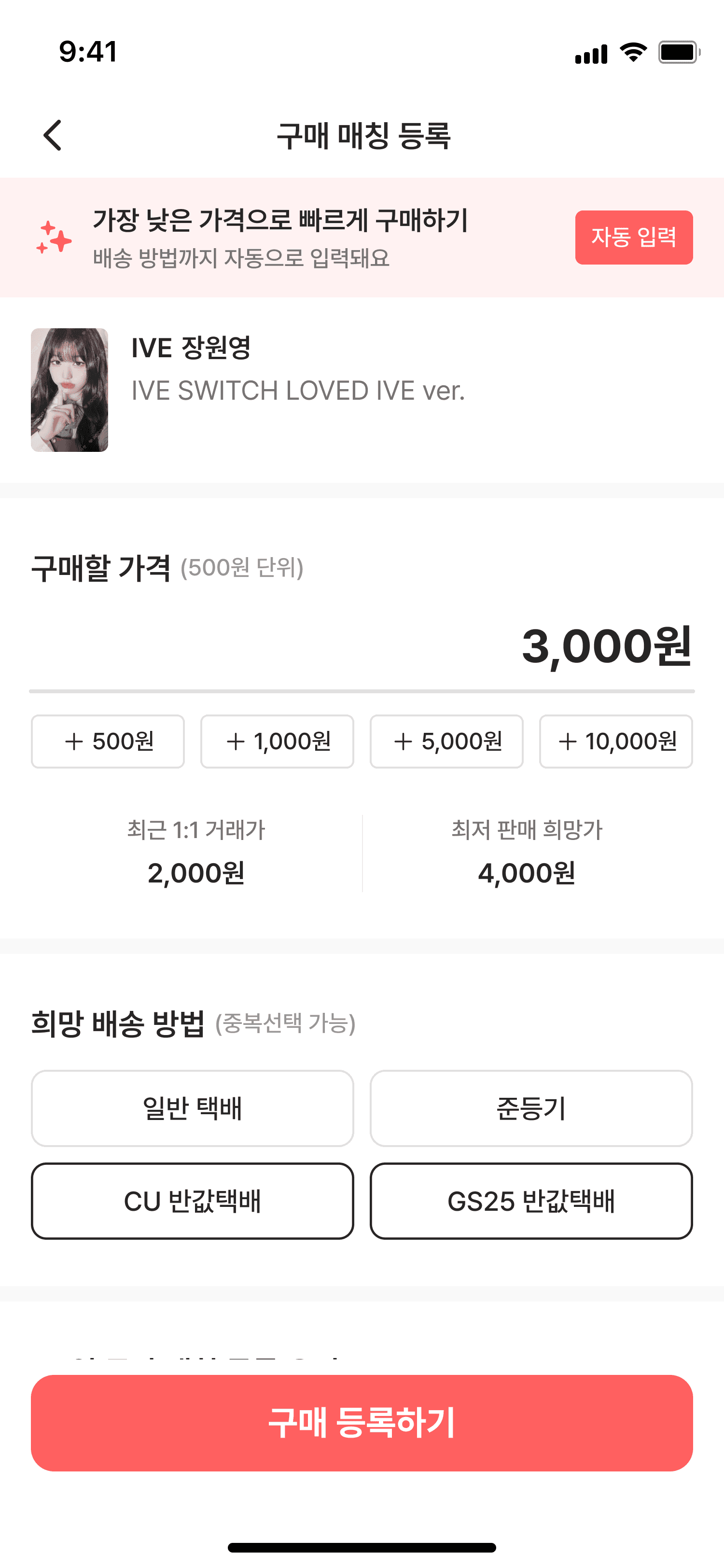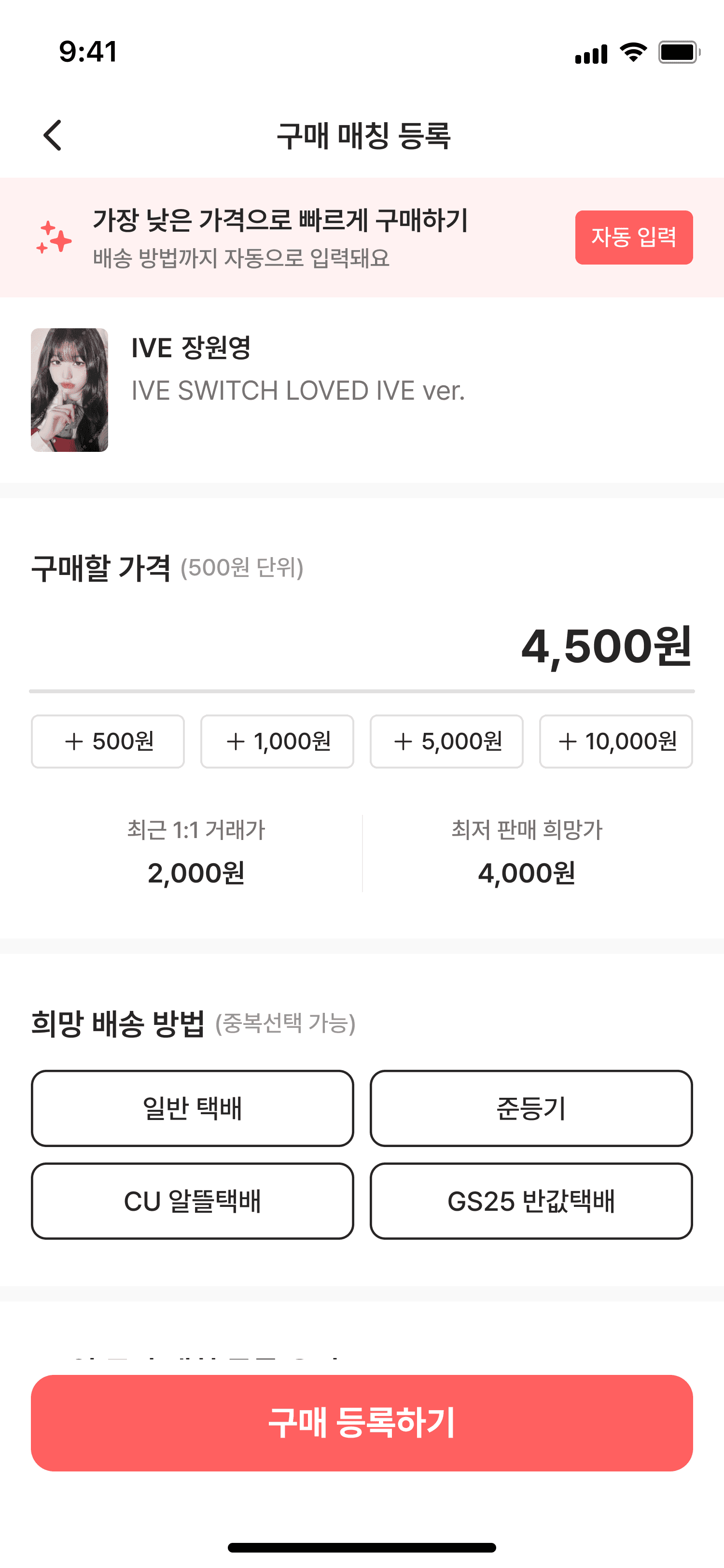 바로 매칭되고 싶다면 상단의 자동 입력 버튼을 눌러보세요!