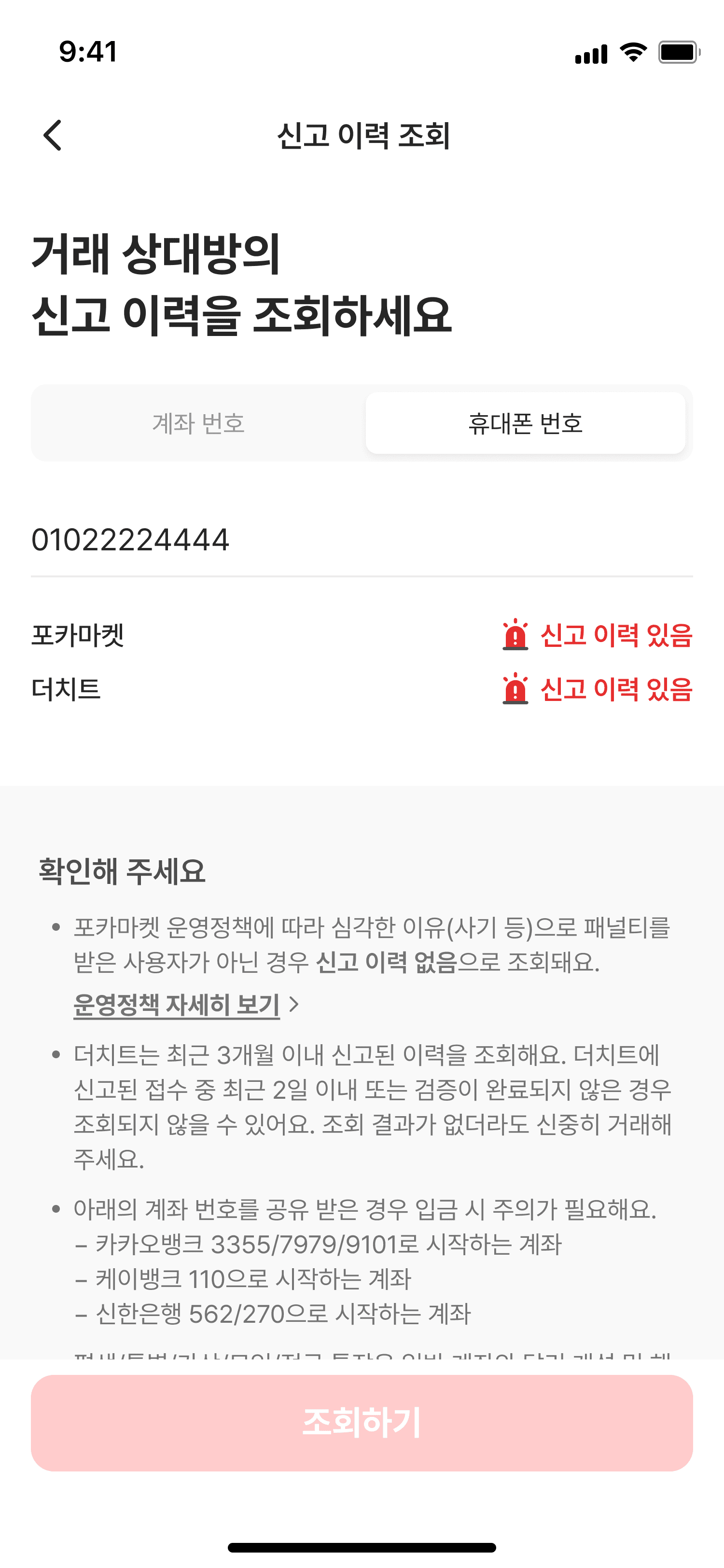 상대방의 거래 이력 조회부터 인증 여부 확인까지!